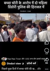 सच का सामना न्यूज डिंडोरी,,, जिले में बच्चा गिरोह सक्रिय होने और सोमवार को बच्चा चोरी करते दो महिलाओं को गिरफ्तार किये जाने की भ्रामक खबरें सोशल मीडिया पर वायरल हो रही है। जबकि ऐसी कोई घटना अथवा वारदात की पुष्टि डिंडोरी पुलिस द्वारा नहीं की गई है। तब भी सोशल मीडिया पर इस तरह की खबरें तेजी से फैलाए जाने से जिले भर में अभिभावक अपने बच्चों को लेकर चिंता में है। पूरे जिले में बच्चा चोर गिरोह की खबर चर्चा में है और कुछ कथित तत्वों द्वारा सोशल मीडिया पर भ्रामक खबरें प्रसारित किये जाने के बाद जिले भर में यह चर्चा का विषय बना हुआ है। चर्चा है कि सोमवार को डीडी मार्केट के आसपास दो महिलाओं को बच्चा चोरी करते लोगों ने पकड़ा और फिर उन्हें पुलिस के हवाले कर दिया गया। प्राप्त जानकारी के अनुसार पर्स चोरी के संदेह पर दो महिलाओं को लोगों द्वारा पकड़े जाने के बाद उन्हें पुलिस हिरासत में लिया गया था। जिनसे पूछताछ के बाद पुलिस द्वारा उन्हें छोड़ दिया गया। इस संबंध में न तो कोई शिकायत किसी के द्वारा दर्ज करवाई गई है और न ही इन महिलाओं से कोई जप्ति की गई है। किंतु कुछ लोगों द्वारा तत्वहीन भ्रामक खबर फैलाई जा रही है कि बच्चा चोरी करते दो महिलाओं को पुलिस के हवाले किया गया। किसी बच्चे के चोरी अथवा चोरी किए जाने के प्रयास की भी कोई शिकायत अथवा एफ आई आर कोतवाली में दर्ज नहीं कराई गई है। इस तरह की भ्रामक खबर से पूरे जिले में दहशत का माहौल है बच्चों में डर व्याप्त है इस खबर को लेकर महिलाओं में अधिक चर्चा है। जबकि ऐसी कोई घटना हुई ही नहीं है। पूरी तरह से निराधार खबर फैलाई जा रही है