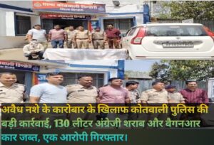 अवैध नशे के कारोबार के खिलाफ कोतवाली पुलिस की बड़ी कार्रवाई, 130 लीटर अंग्रेजी शराब और वैगनआर कार जब्त, एक आरोपी गिरफ्तार