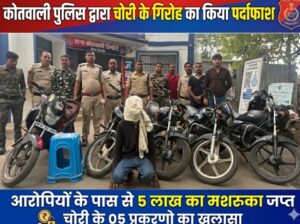 कोतवाली पुलिस द्वारा चोरी के गिरोह का किया पर्दाफाश,आरोपियों के पास से 5 लाख का मशरुका जप्त