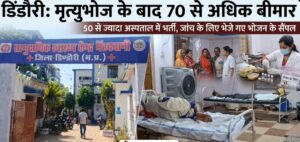 डिंडौरी। मध्यप्रदेश के डिंडौरी जिले में आयोजित एक मृत्युभोज के बाद बड़ी संख्या में लोगों के बीमार पड़ने से हड़कंप मच गया। जिले के मेहदवानी जनपद अंतर्गत झाम टोला गांव में शुक्रवार रात आयोजित दशगात्र भोज के बाद 70 से अधिक लोगों की तबीयत अचानक बिगड़ गई, जबकि लगभग 100 लोगों में फूड पॉइजनिंग के लक्षण पाए जाने की आशंका जताई जा रही है। प्रभावितों में महिलाएं, पुरुष और बच्चे शामिल हैं।