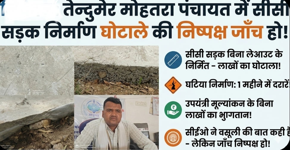 तेन्दुमेर मोहतरा पंचायत में बिना लेआउट के करा दिये लाखो रू के सीसी सड़क,सीईओ ने कहा – होगी वसूली